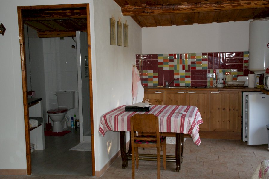 Un coin cuisine + wc et salle de bain (douche italienne)