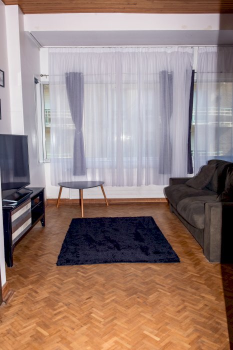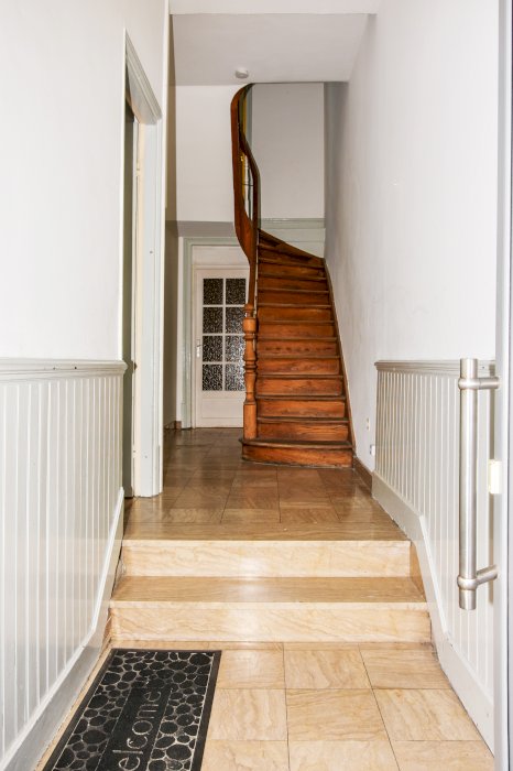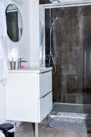 Logement entier situé au 1er étage d'un bâtiment de 4 étages avec une terasse côte nord et une petite vue sur mer.