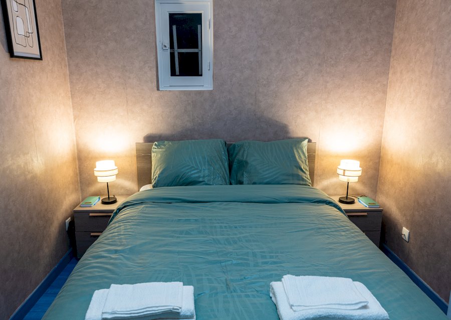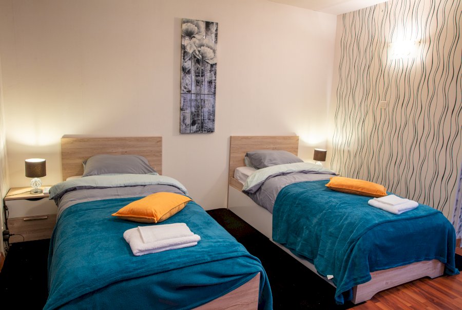 - D’une deuxième chambre de 20m2 avec deux lits séparés 200 x 90cm, (draps fournis) et de son dressing. Le petit plus : Chambre à clé, télé, portant, sèche-cheveux