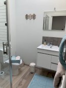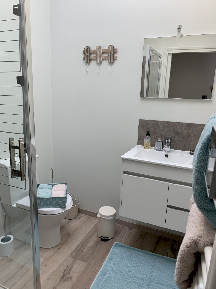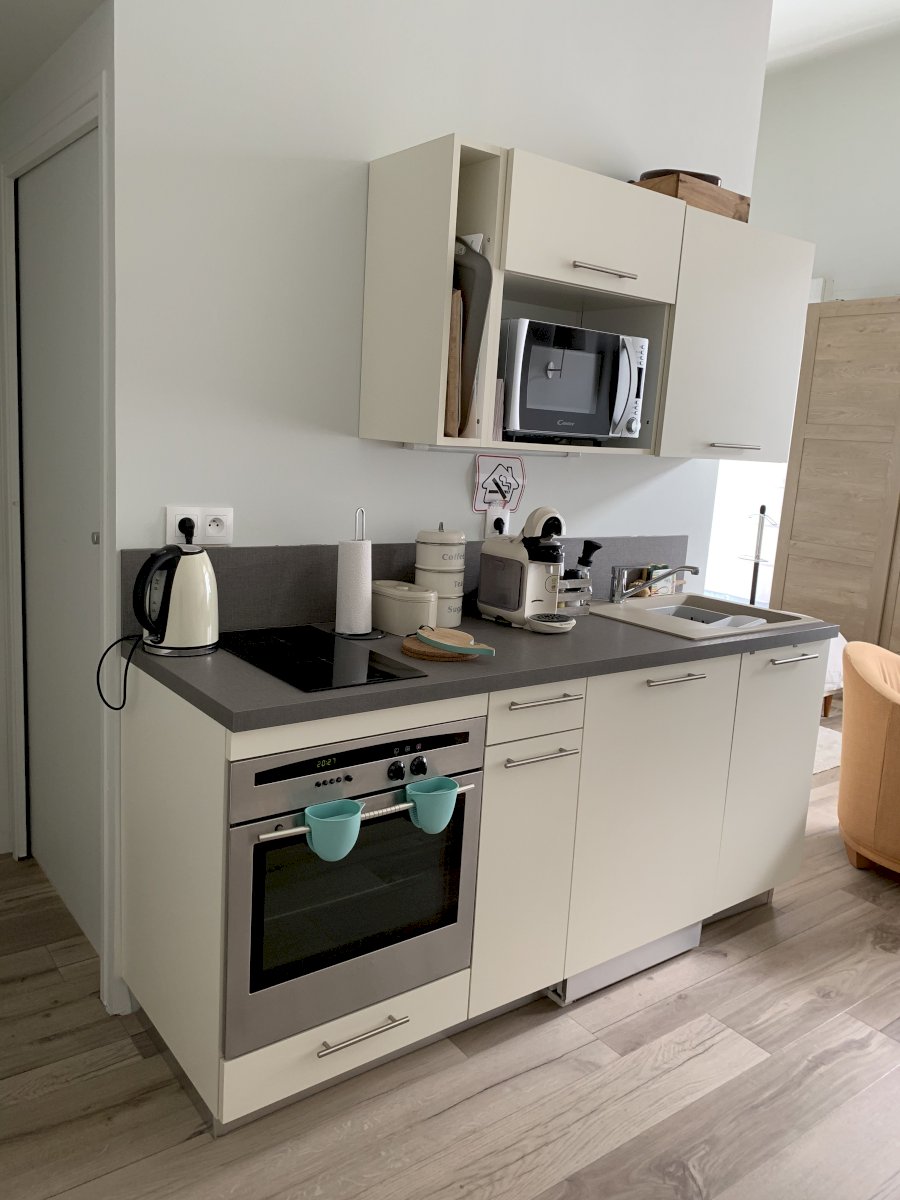Bien équipé : kitchenette fonctionnelle( réfrigérateur avec compartiment congélateur, plaque de cuisson 2 feux, four) , salle de bain (douche/ wc) confortable