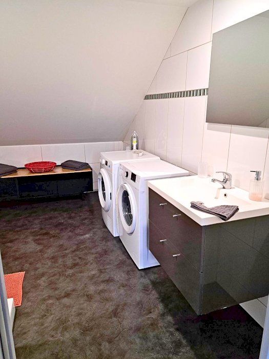Notre logement Studio comprend une grande pièce à vivre avec un lit double pour deux personnes ; une cuisine équipée avec lave-vaisselle, micro-ondes, grille-pain, réfrigérateur, bouilloire et machine à café ; une salle de bains pourvue d’une douche, d’une machine à laver et d’un sèche-linge et deux télévisions avec Netflix. Pour le second couchage, le canapé du séjour est convertible.