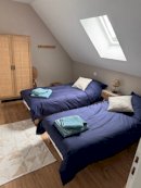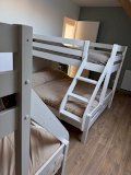 - chambre 3 (ou chambre dortoir) : deux lits superposés (double en bas/simple en haut)