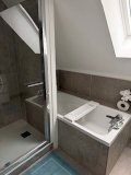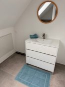À l’étage, vous trouverez une seconde salle de bain (douche + baignoire), et 3 chambres :