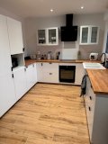 La maison s’organise en un grand espace de vie cuisine-séjour-salle à manger, une buanderie, des WC et une salle de douche en rez de chaussée.