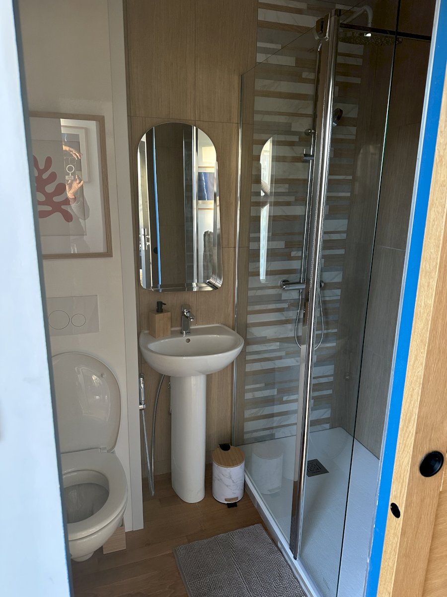 Chambre avec salle de bain et toilette privée dans une annexe de la maison avec entrée indépendante