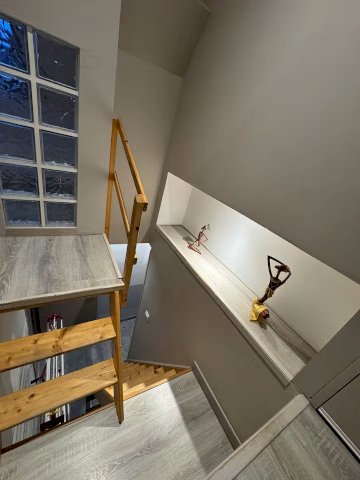 Vous y trouverez une charmante et grande pièce à vivre cathédrale avec une cuisine tout équipée ainsi qu'un salon aménagé.