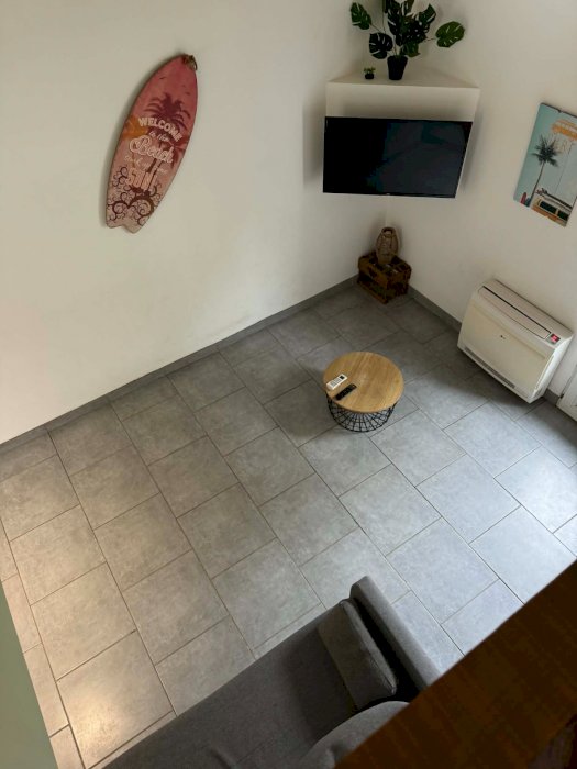 Vous y trouverez une charmante pièce à vivre avec une cuisine tout équipée ainsi qu'un salon avec canapé convertible.