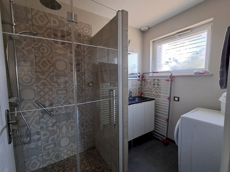 Salle de bain avec lave linge séchant, douche à l'italienne