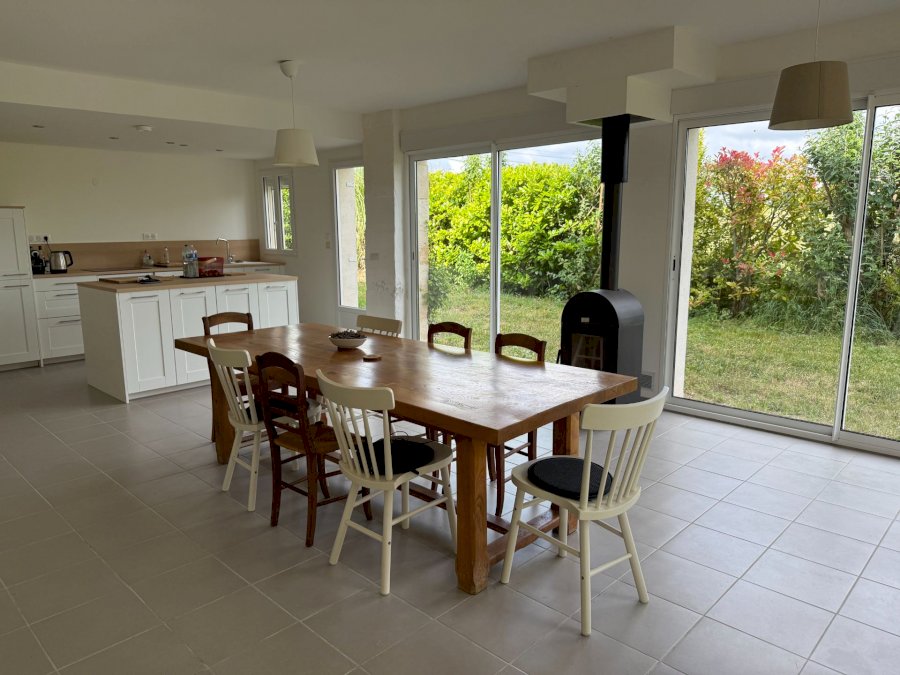 Le rez-de-chaussée accueille une grande salle à manger lumineuse avec sa cuisine entièrement équipée ainsi qu’un agréable salon, dans lequel la haute cheminée, comme un témoin, a gardé dans ses incrustations, les traces d'un passé maritime.