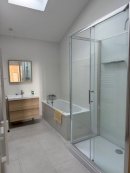 Une suite parentale avec sa salle de bains [baignoire et douche] équipe également ce vaste rez-de-chaussée.